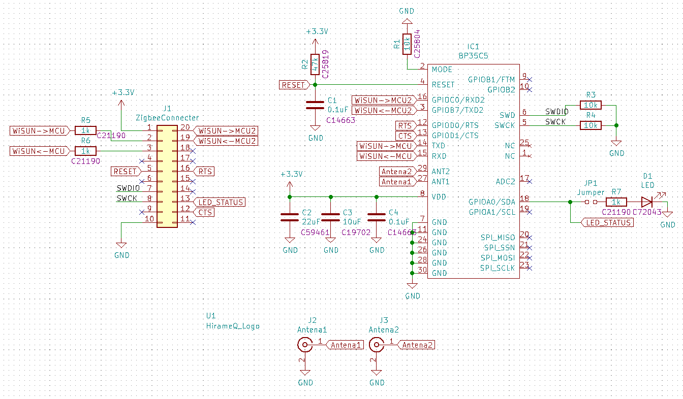WiSUN FAN Xbee互換基板は、ROHMの「BP35C5」をXbeeの基板と互換性のあるように配線をしています。
